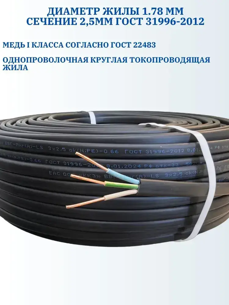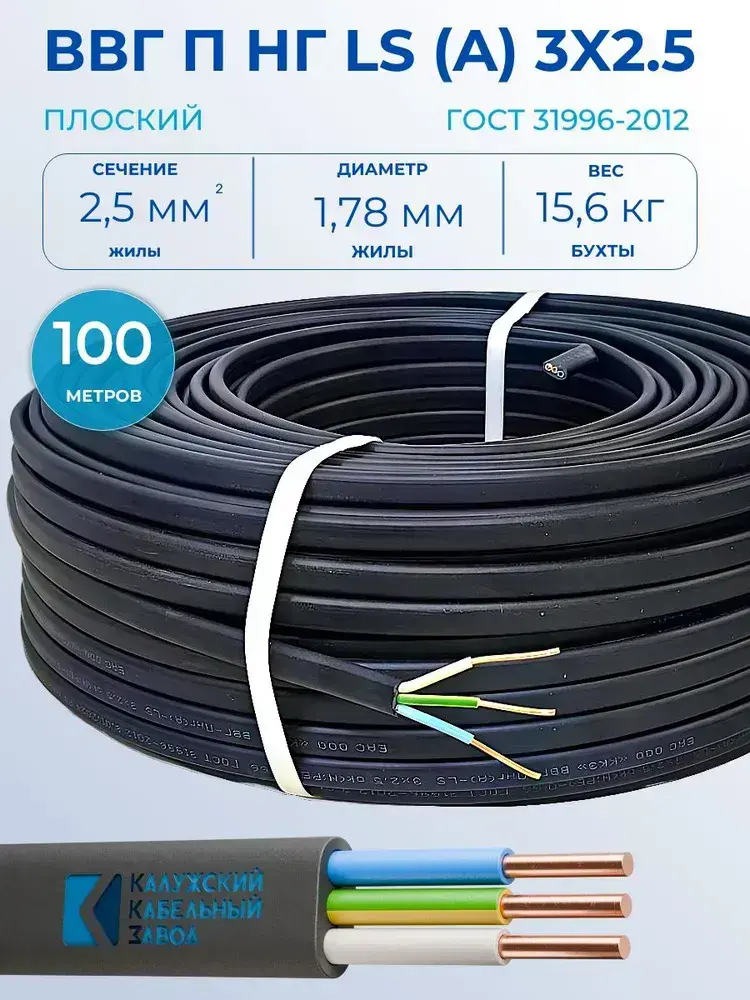 Калужский Кабельный Завод Силовой кабель ВВГ-Пнг(А)-LS 3 x 2.5 мм², 100 м, 15500 г
