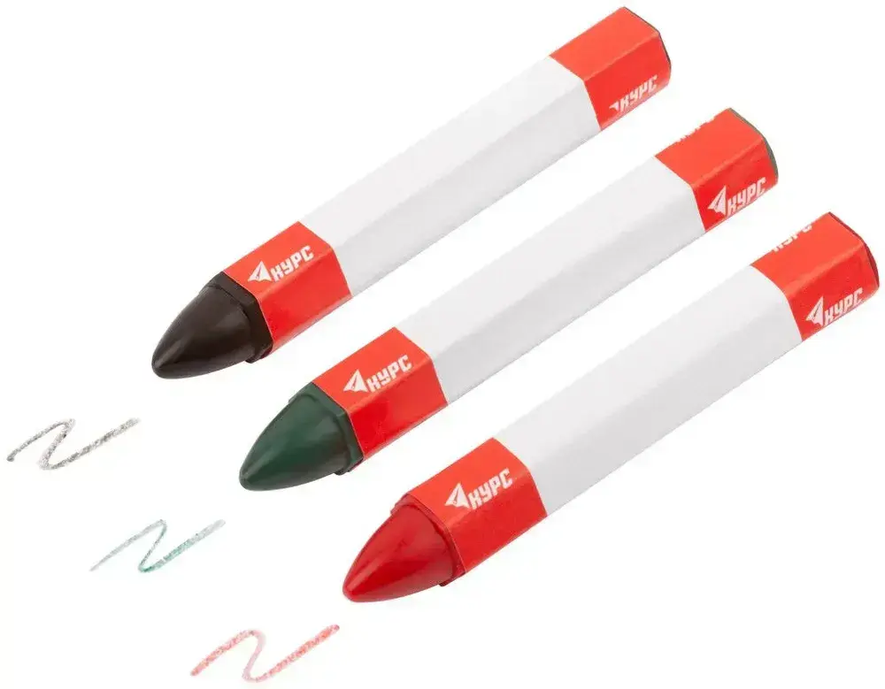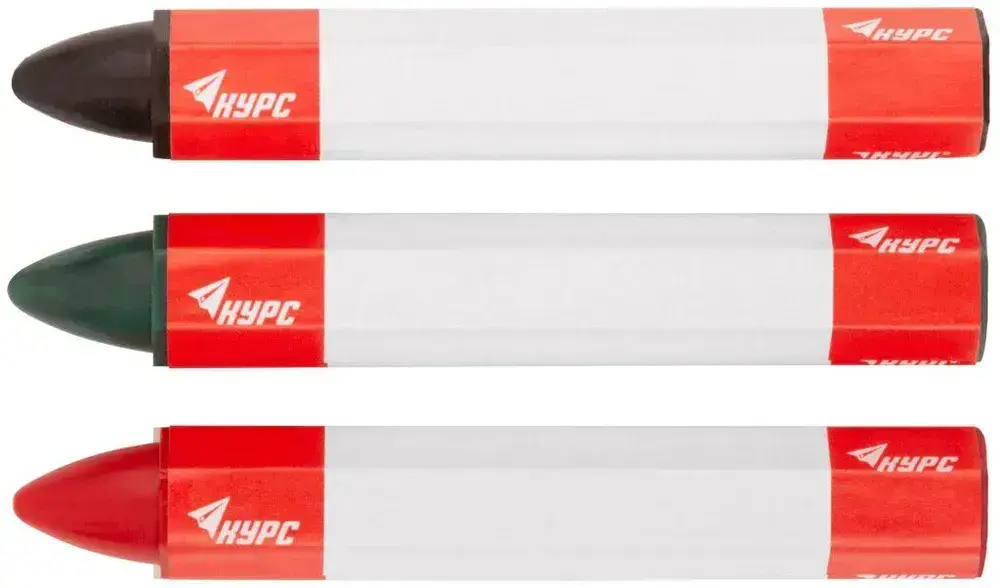 Карандаши строительные восковые набор 3 шт. (черный, зеленый, красный ) 95 мм