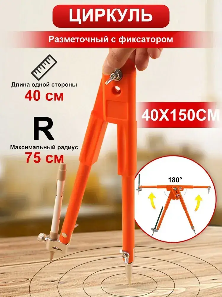 Карандашный циркуль для плотников и маляров, крупногабаритный с точной регулировкой,40*150 cm