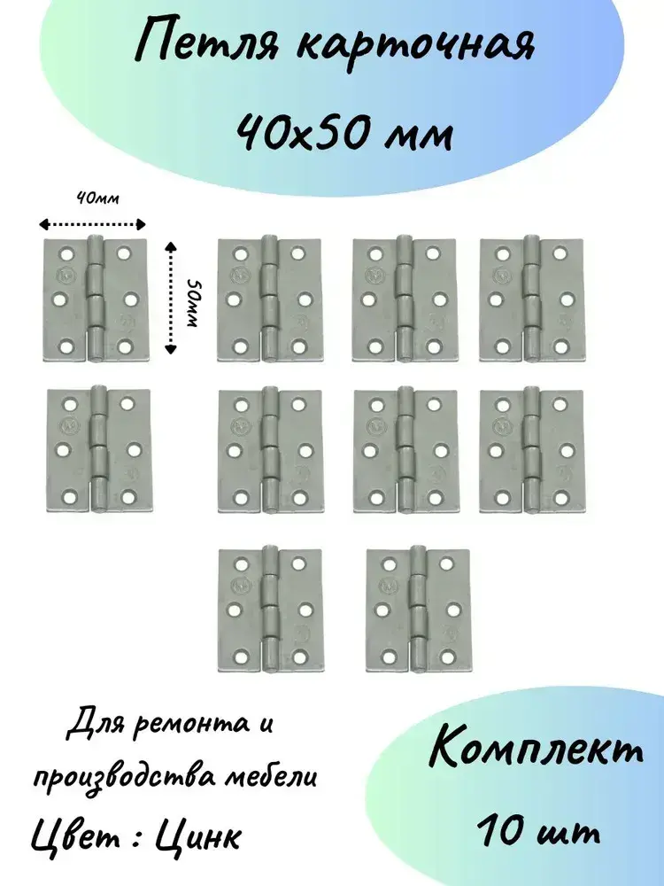 Карточная петля 40 мм на 50мм мебельная-10 шт.