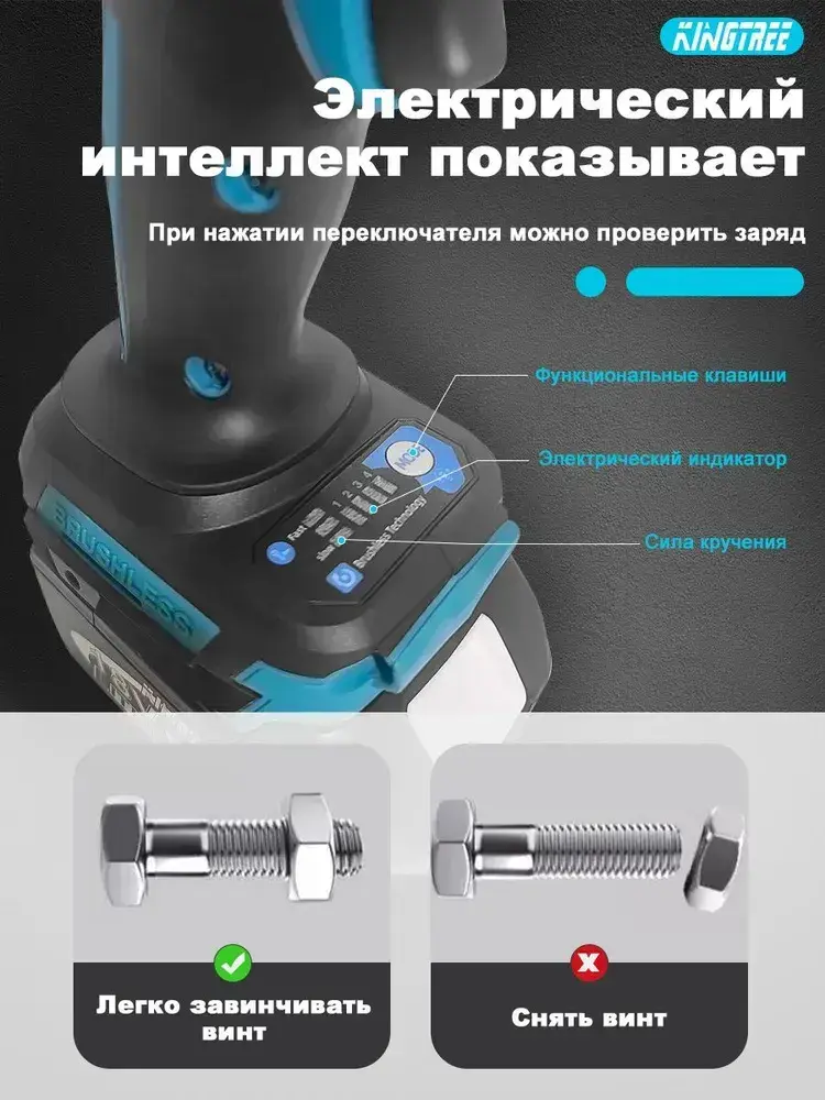 Kingtree Tool DTW700 1800N.m Бесщеточный Электрический Ударный Гайковерт С Высоким Крутящим Моментом 1/2 Дюйма - 2 Аккумулятора 5,0 Ач 18В И Ящик Для Инструментов