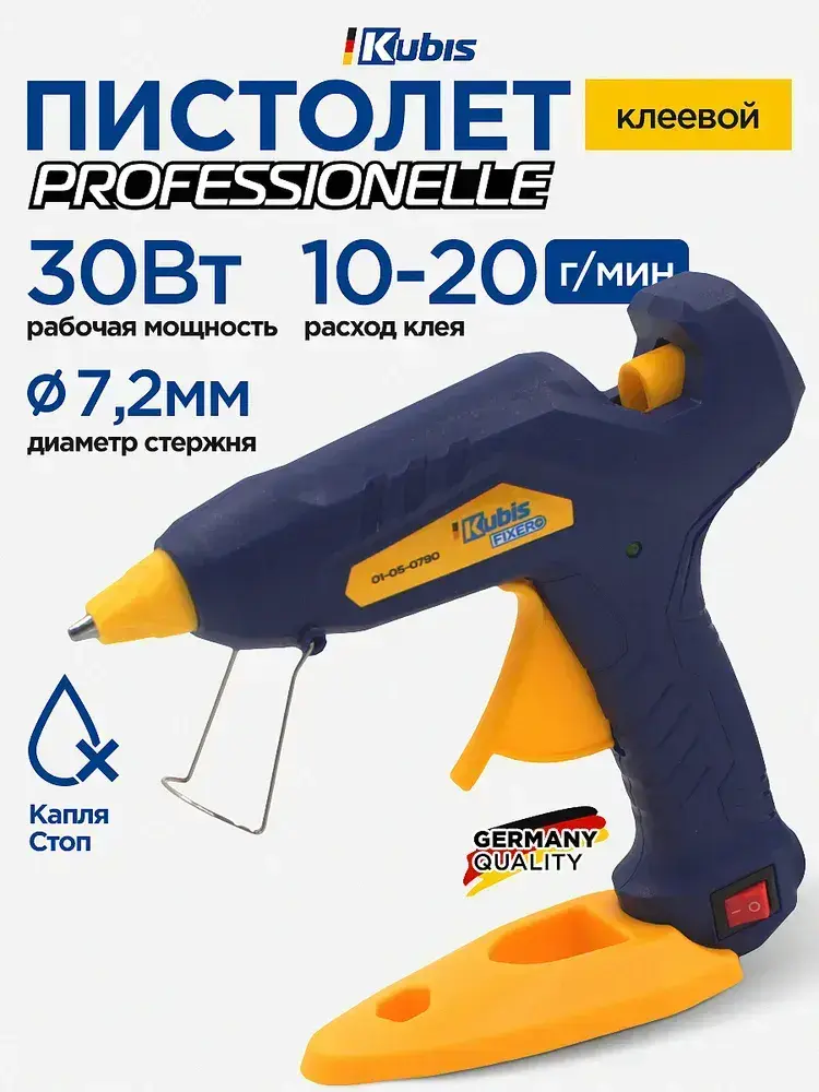 Клеевой пистолет 7 мм профессиональный, для рукоделия, KUBIS, 30 (90) Вт, 10-20 г/мин