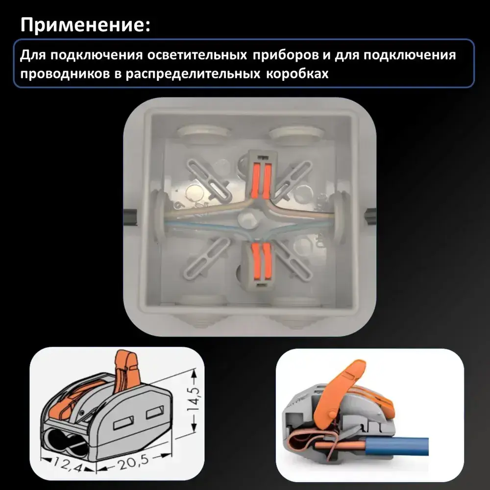 Клемма для проводов двухконтактная, 50 шт, тип WAGO (Ваго) соединительная для проводов