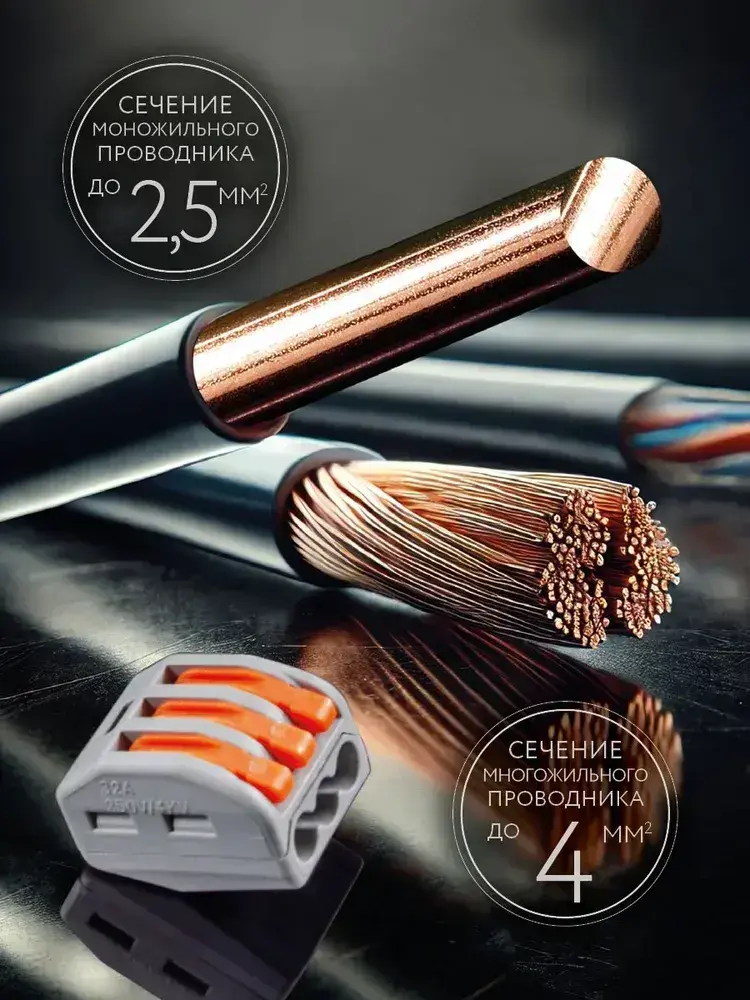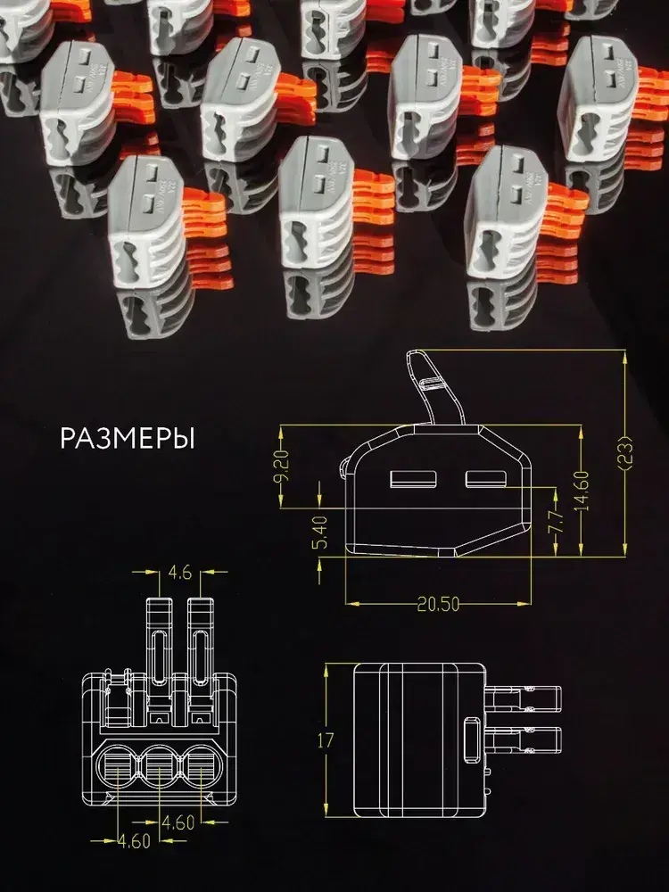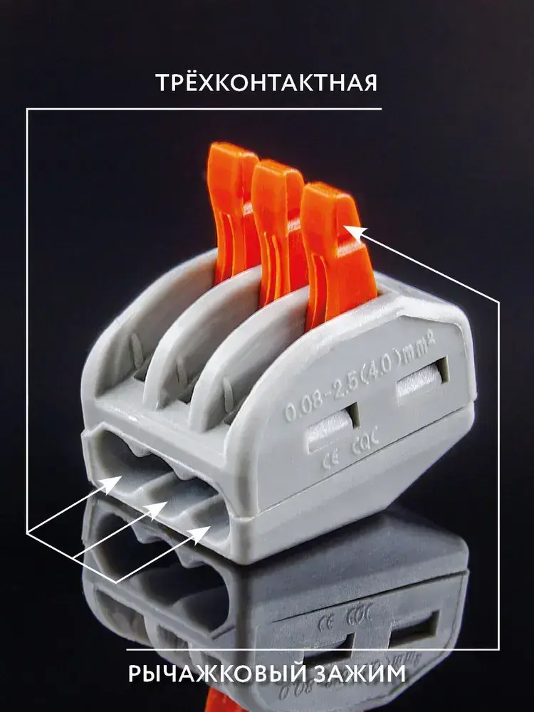 Клемма для проводов соединительная 3 контакта, тип WAGO (Ваго), 20 шт