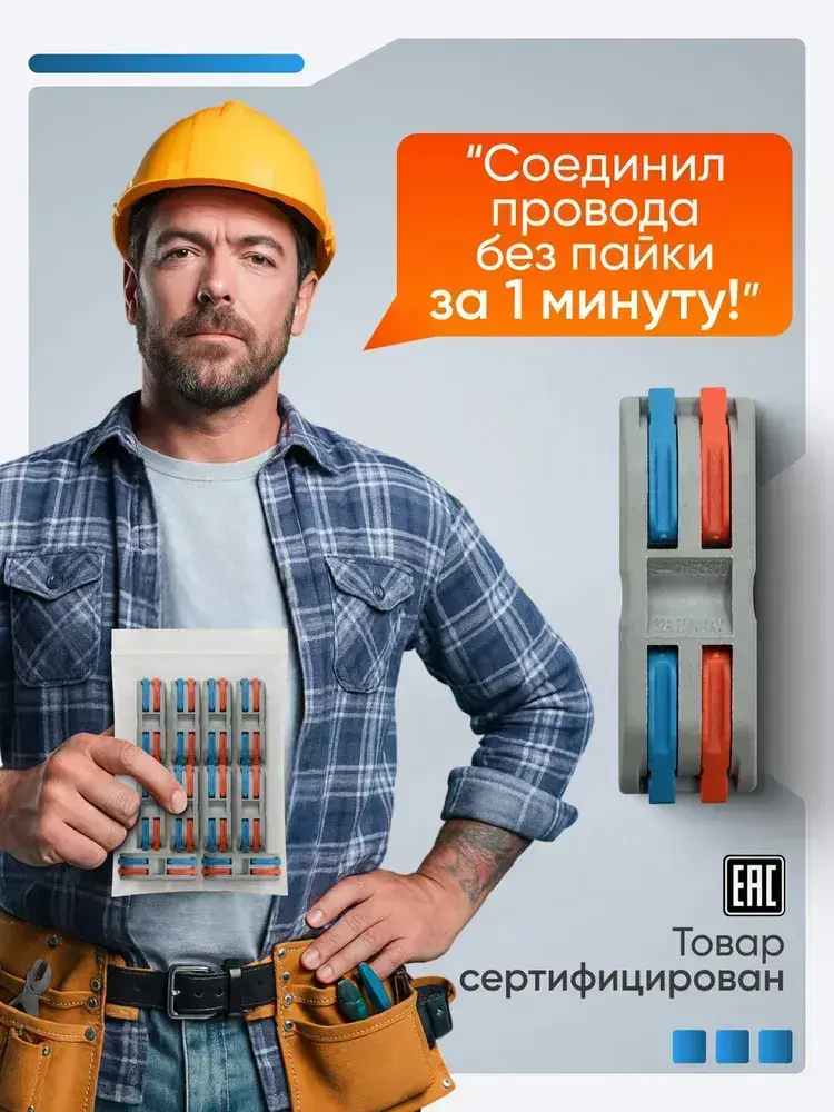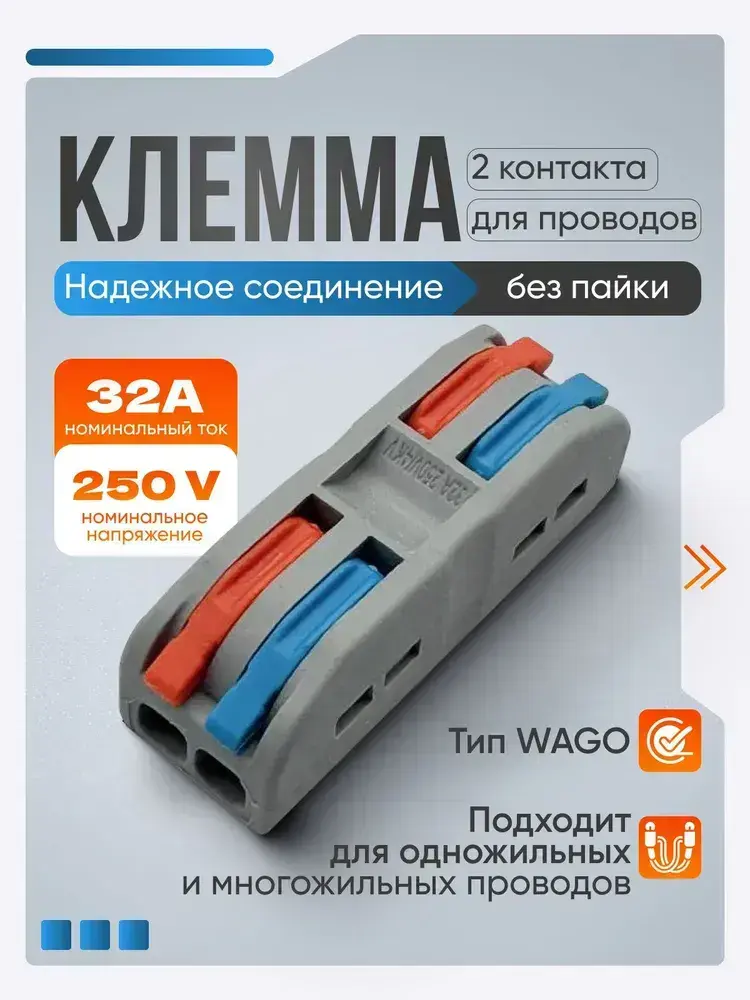 Клемма для соединения проводов 0,08-4 мм2, 32А, 2-х полюсная, 10 шт.