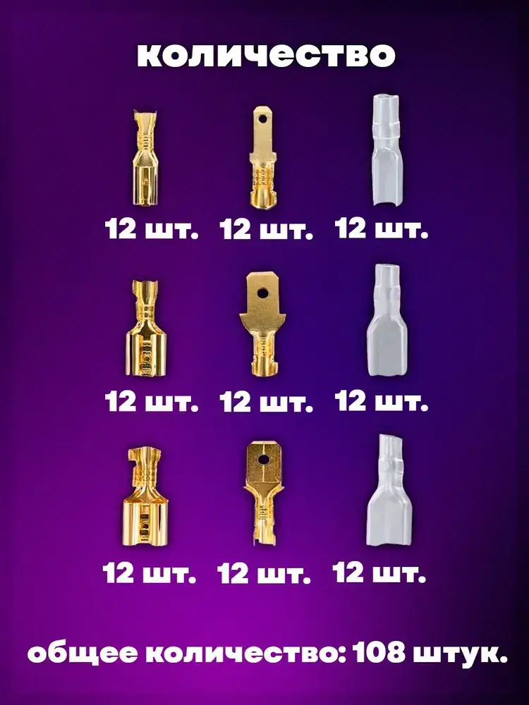 Клеммы для проводов обжимные (соединители) 100 предметов, 3 вида "лопатки"