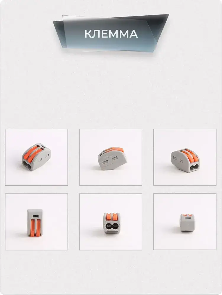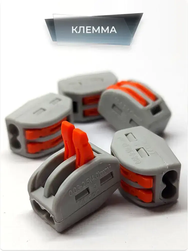 Клеммы для проводов универсальные строительно монтажные зажимные 2-х Контактные 0.08-2.5(4.0)мм2 32А РСТ 212 (Аналог) 20 штук