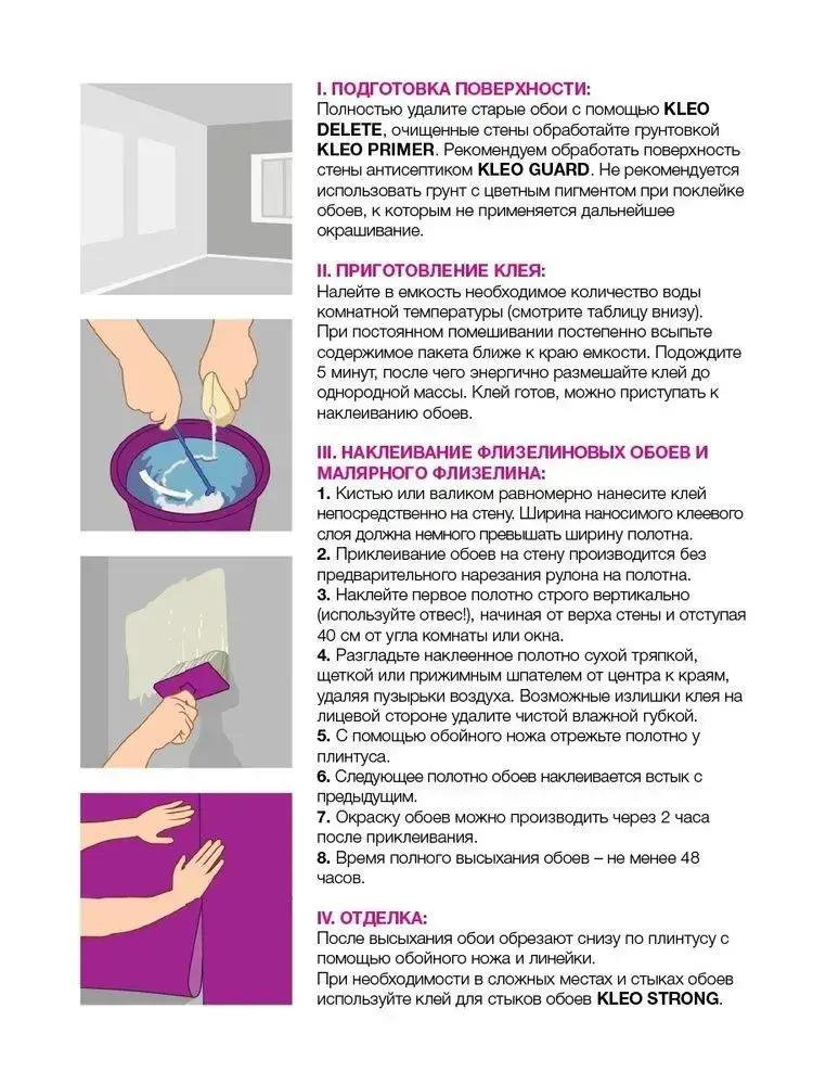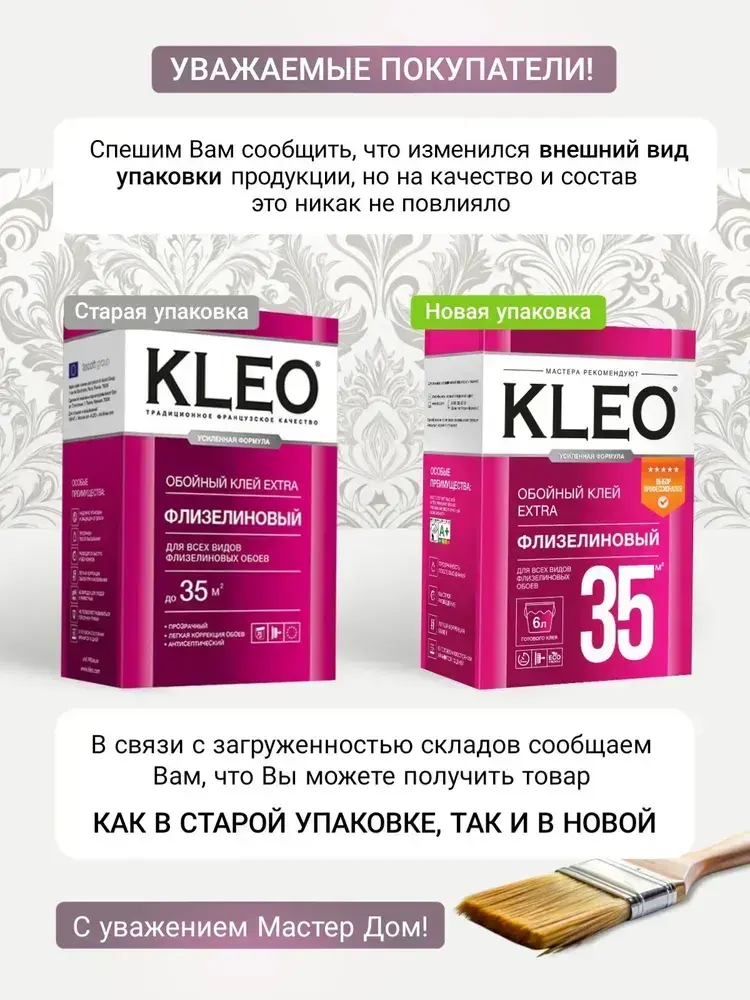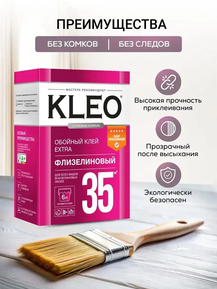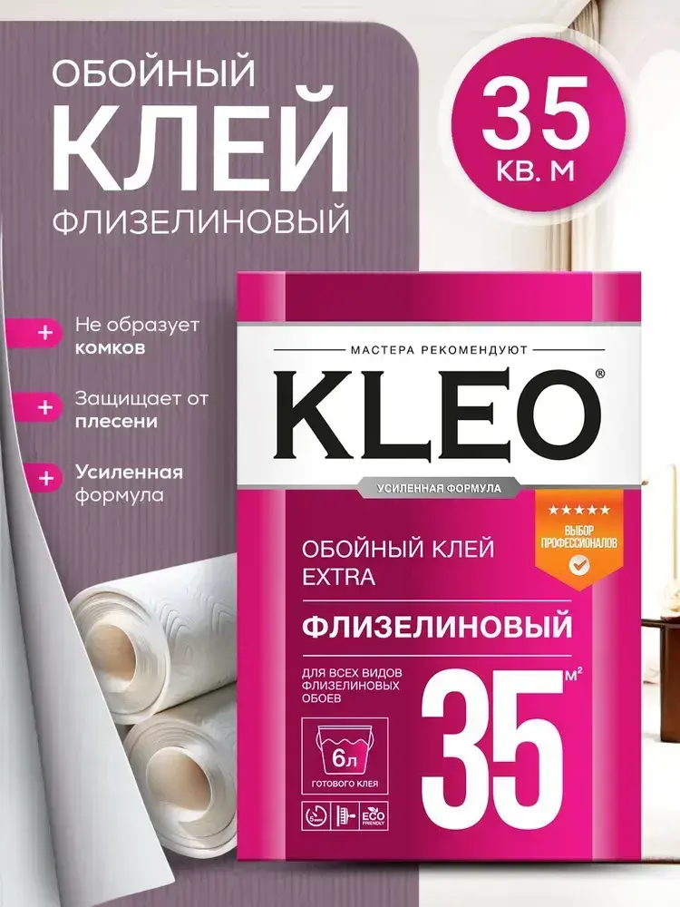 KLEO EXTRA клей для обоев на 35 кв.м, обойный клей для виниловых, бумажных, флизелиновых обоев на основе малярного флизелина, сыпучий 240 гр