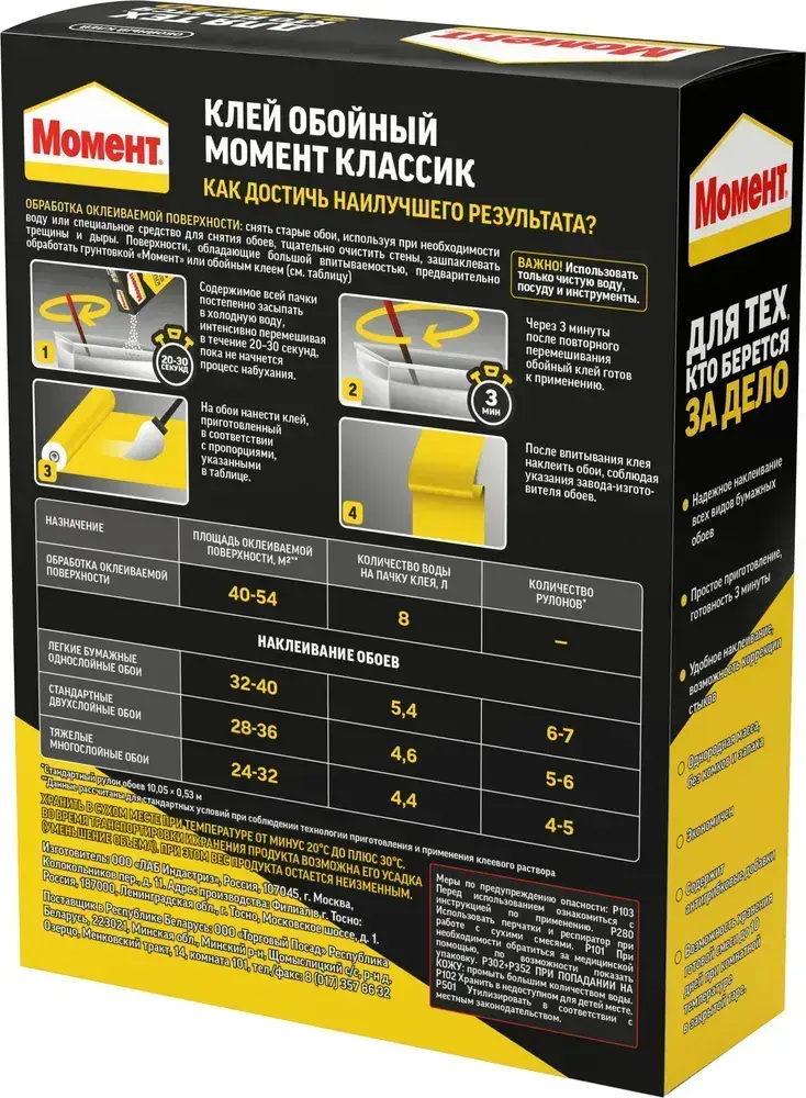 Клей для обоев Момент классик 200 гр / подходит для всех видов бумажных обоев