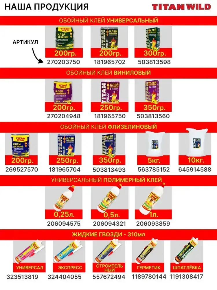Клей для обоев Titan Wild универсал. 200 Б/И (200 гр.)