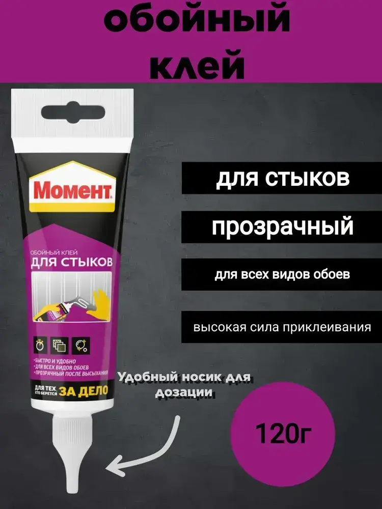Клей для стыков и подклейки обоев Момент, 120 гр