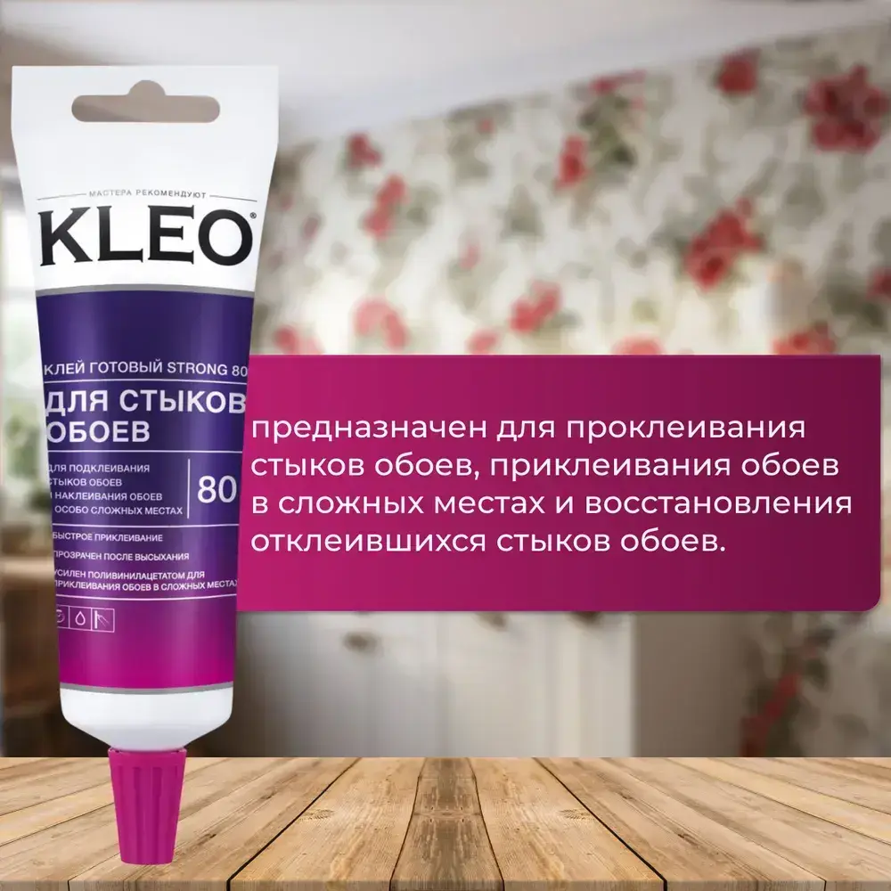 Клей для стыков обоев KLEO STRONG 80 усиленная формула для виниловых, флизелиновых, бумажных обоев, антигрибковая и антисептическая формула Клео Экстра