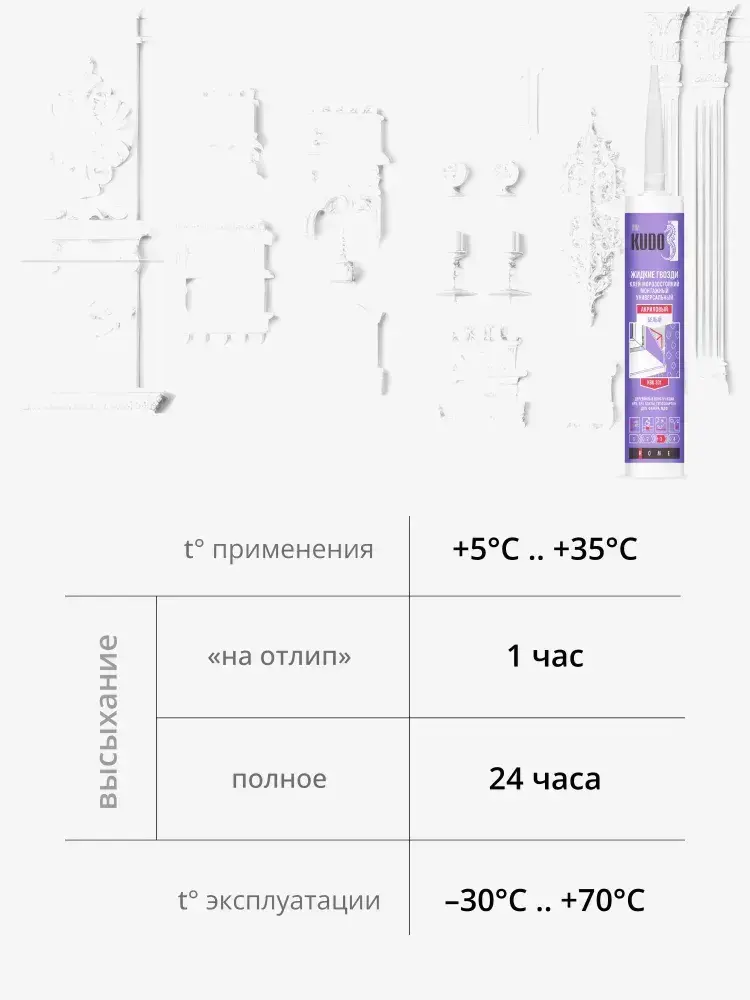 Клей-герметик монтажный KUDO "ЖИДКИЕ ГВОЗДИ" на акриловой основе. Универсальный, белый, KBK 301