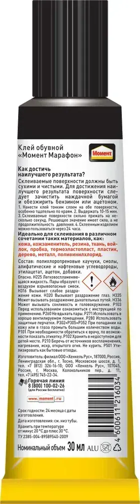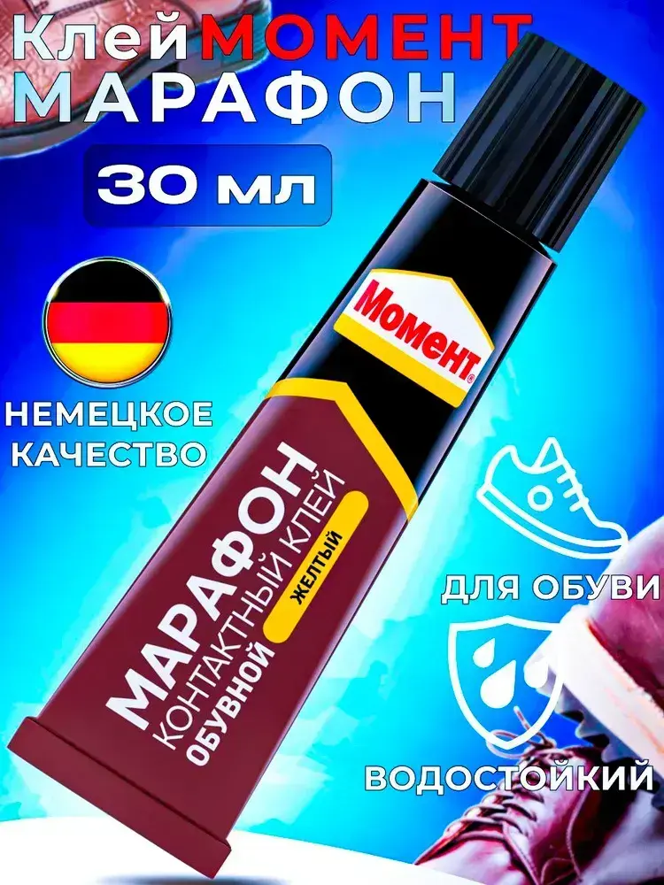 Клей Момент Марафон для обуви Водостойкий Морозостойкий 30 мл, 1 шт