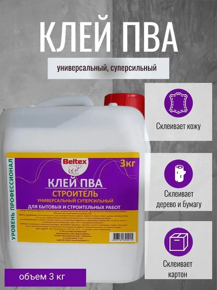 Клей ПВА Белтекс СТРОИТЕЛЬ УНИВЕРСАЛЬНЫЙ суперсильный 3кг