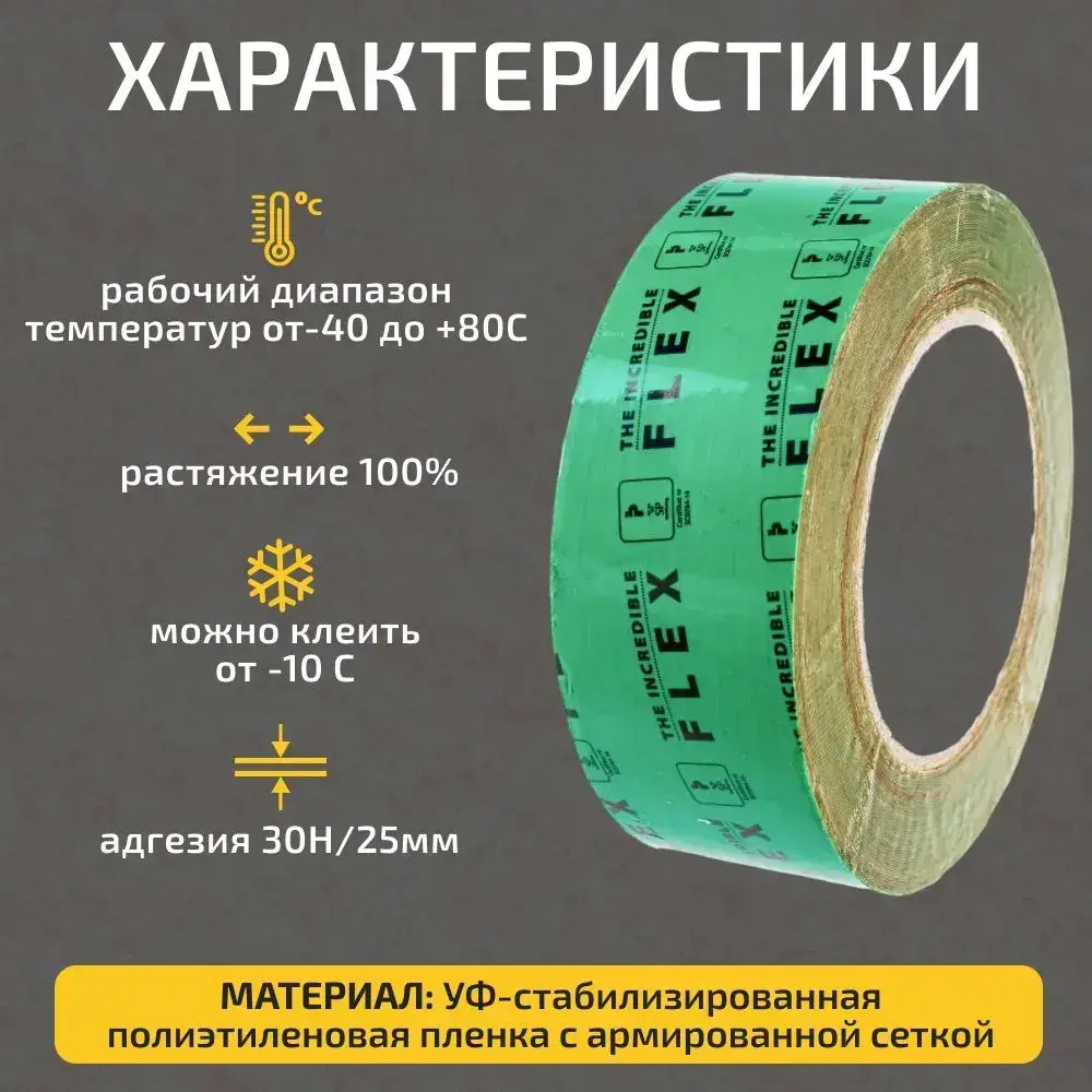 Клейкая армированная лента Tectis Sitko TIF (The Incredible Flex) для мембран и пленок 25метров