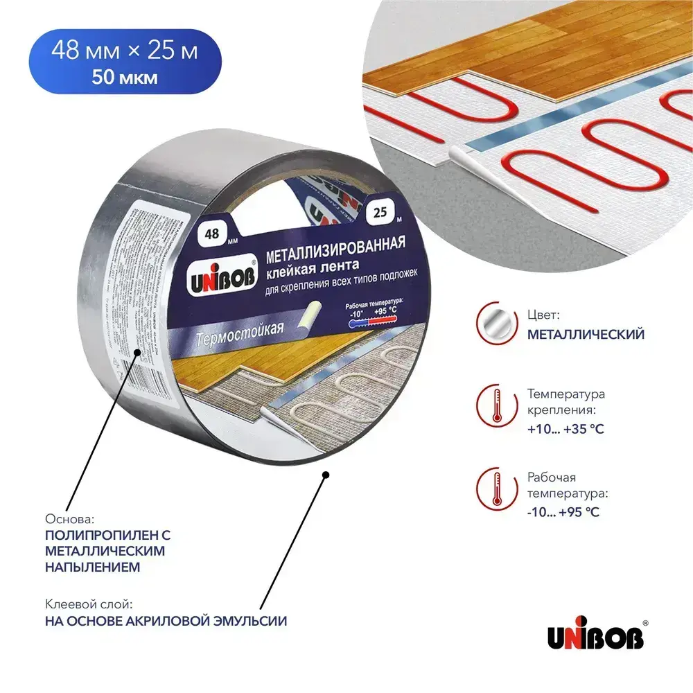 Клейкая лента металлизированная для скрепления подложек 48 мм х 25 м