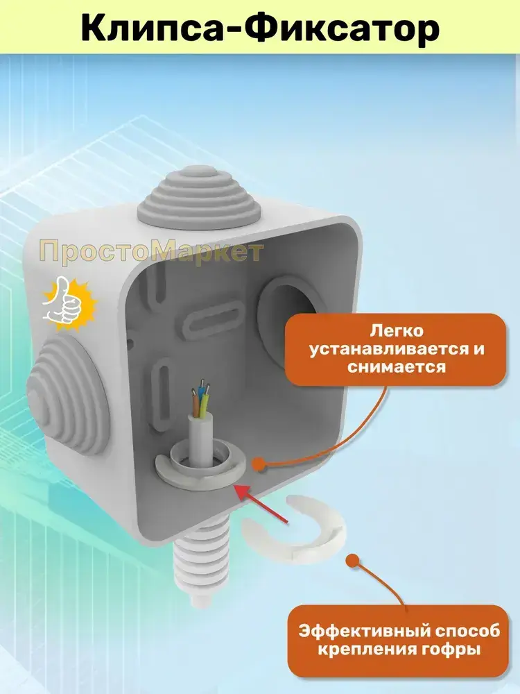 Клипса фиксатор для электро гофры 20мм серая, комплект 10шт..