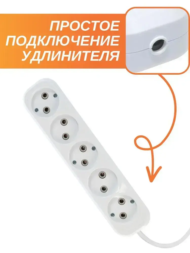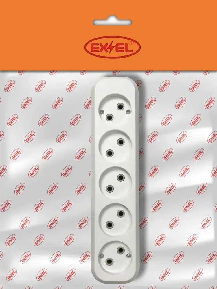 Колодка для удлинителей / Розетка переносная разборная 5-местная без заземлением 250В 10А, белый, EXEL
