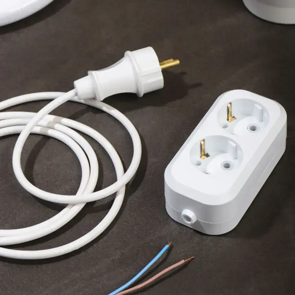 Колодка для удлинителя на 2 розетки, с заземлением 220В 16А