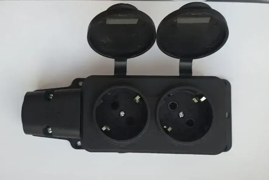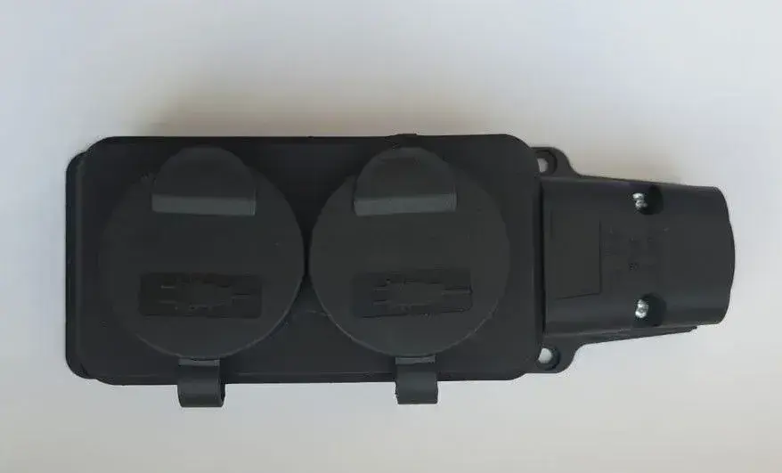 Колодка розеточная электрическая каучуковая с заземлением на 2 розетки, IP 54,черный