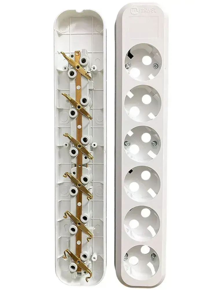 Колодка розеточная Makel 6 гнезд с заземлением 16А 3600Вт белая MGP 181