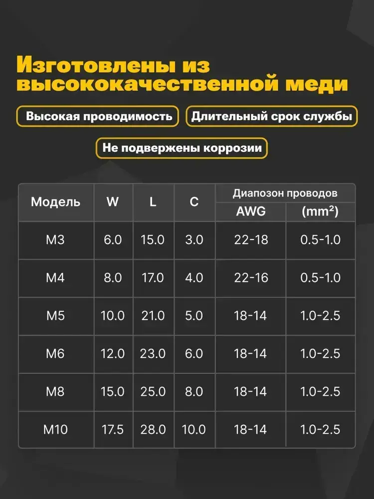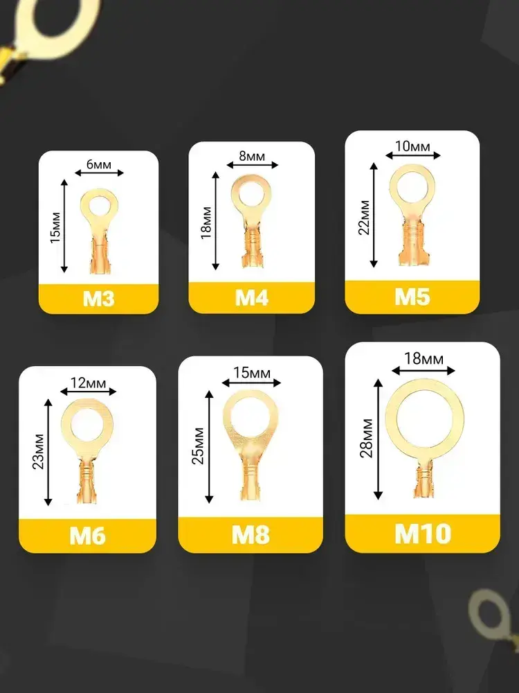 Кольцевые наконечники неизолированные медные клеммы, 150 предметов