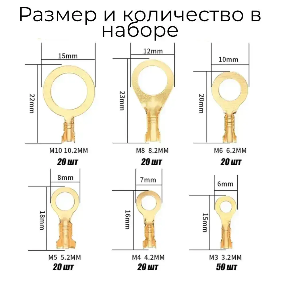 Кольцевые наконечники неизолированные медные клеммы - 150 шт.