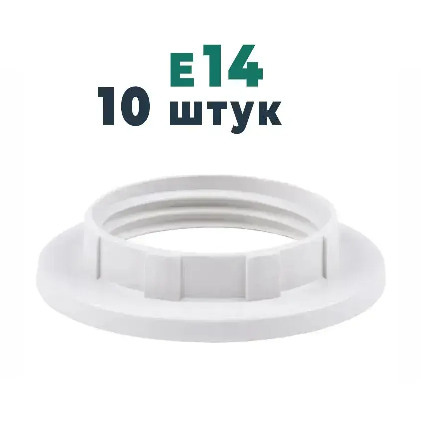 Кольцо для патрона Е14 прижимное, 10 штук, цвет белый термостойкий пластик