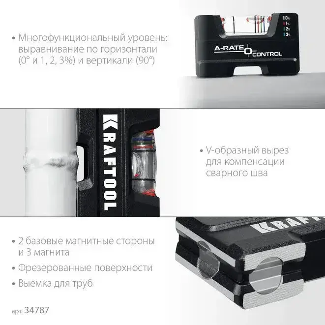 Компактный литой магнитный уровень KRAFTOOL 5-в-1 76 мм 34787