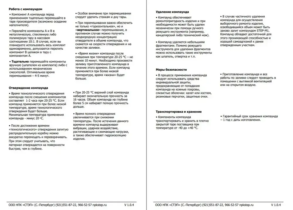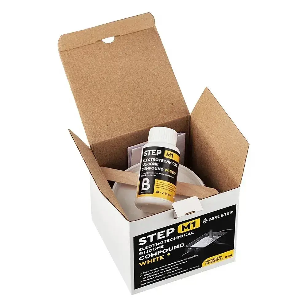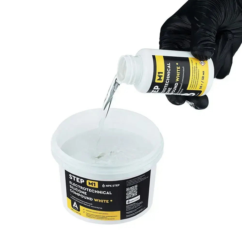 Компаунд силиконовый белый для распределительных коробок STEP-M1 0,5 л