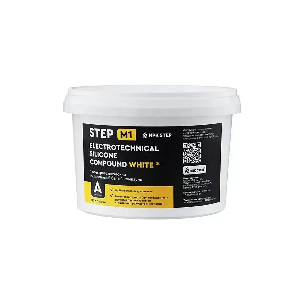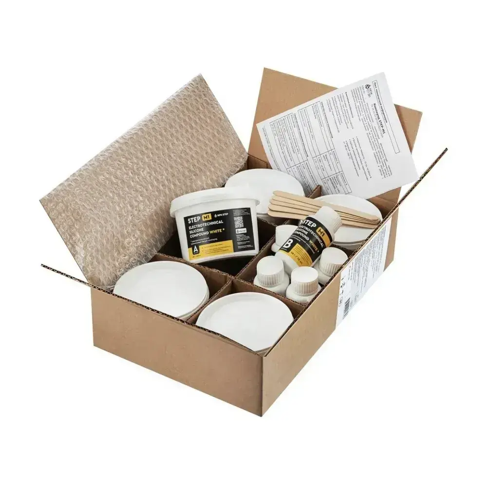 Компаунд силиконовый белый для распределительных коробок STEP-M1 2,5л (уп. 5 шт по 500 мл)