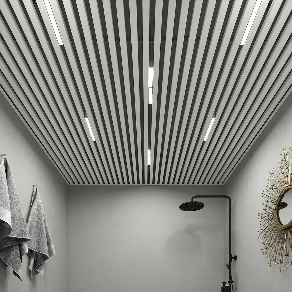 Комплект 1,7х1,7м кубообразного реечного алюминиевого потолка CESAL AR C 30/27 Белый матовый (для ванной, входных групп, санузлов и лоджий)