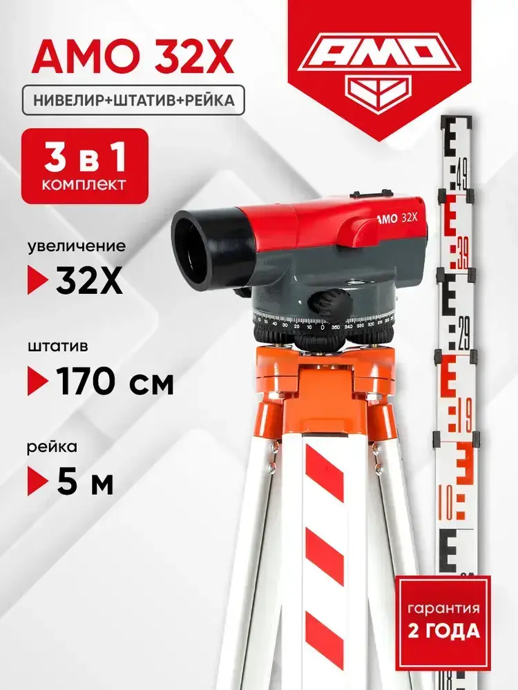 Комплект оптический нивелир AMO 32X + штатив S6-N + рейка AMO S5