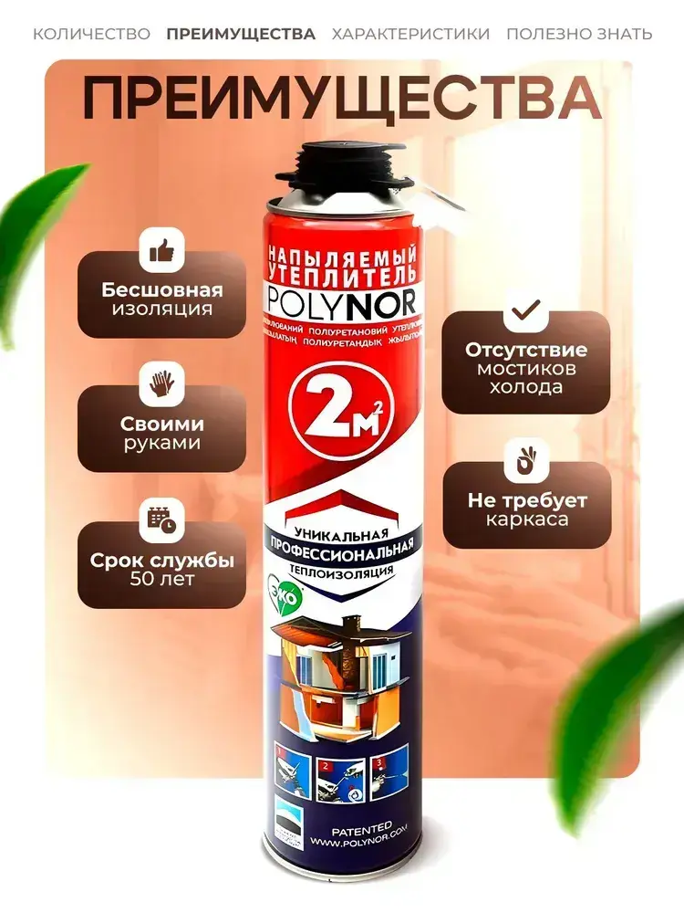 Комплект POLYNOR 11 шт - напыляемый утеплитель в баллонах под пистолет. ППУ пена Полинор для утепления стен/пола