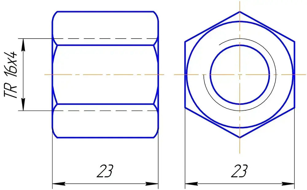 Комплект TR 16x4 Трапецеидальный винт, трапецеидальная гайка шестигранная.