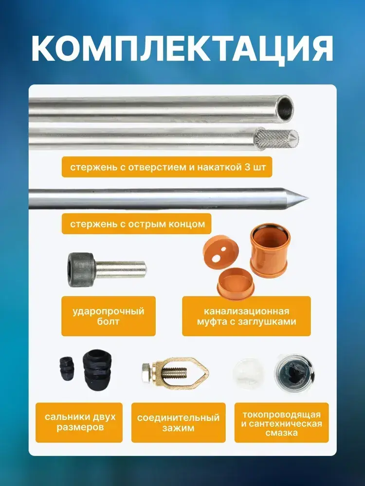 Комплект заземления безмуфтовый для дома из нержавеющей стали 6 метров