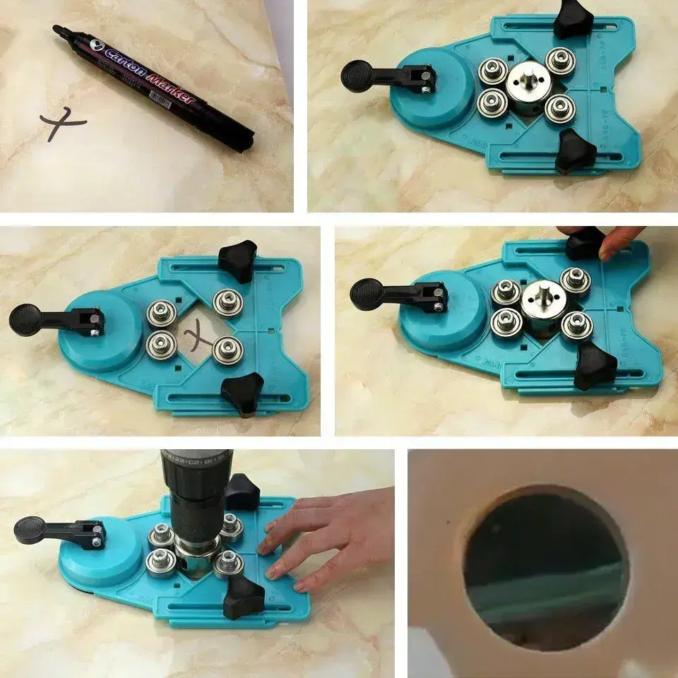 Кондуктор для сверления отверстий от 4 до 83 мм, присоска для плитки вакуумная, универсальный шаблон для резки, локатор, инструмент укладки керамогранита, станок, плиткарез