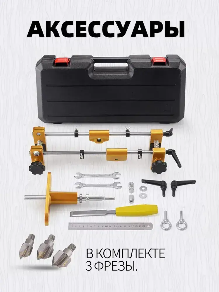 Кондуктор для врезки дверных замков 3 фрез / Шаблон для врезки дверных замков, ручек, личинок / комплект 8 предметов + кейс