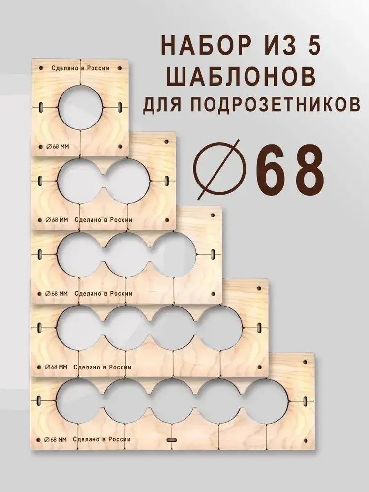 Кондуктор - Шаблон для сверления подрозетников 68 мм - 5 шт от 1 до 5 отверстий - 5 шт от 1 до 5 отверстий