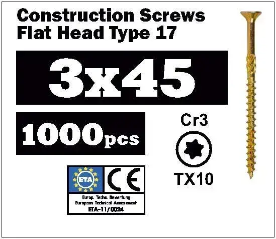 Конструкционный саморез по дереву 3х45 потай, TX10 SEWMETIZ
