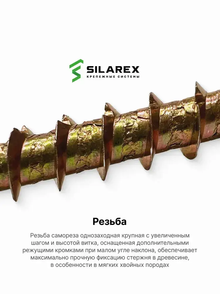 Конструкционный шуруп по дереву 8х120, головка WH - плоская пресс шайба
