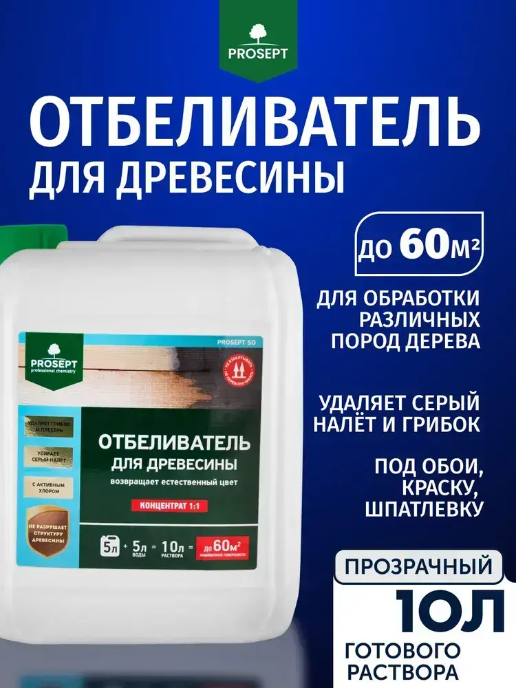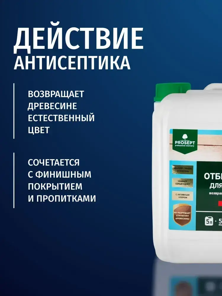Концентрат 1:1 Отбеливатель для древесины в бане и для наружных работ PROSEPT 50 антисептик лечебный от грибка и потемнений 5 л (арт. 001-5)