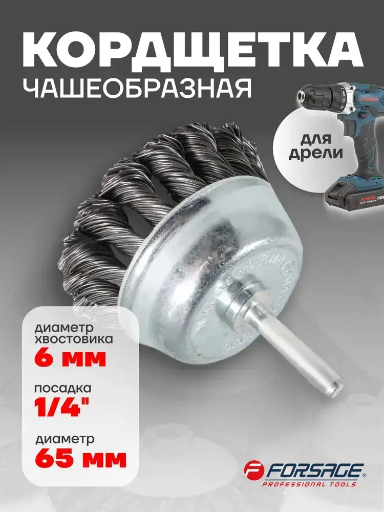 Кордщетка чашеобразная стальная витая для дрели 65мм