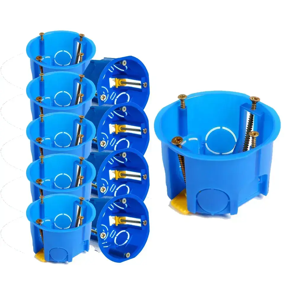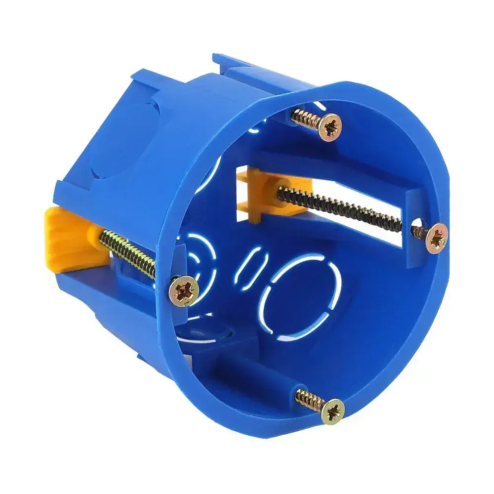 Коробка подрозетник установочная одноместная, Smartbuy Electric 68x45 круглая для монтажа в гипсокартон и полых стен с лапками IP20 синяя (комплект из 10 шт.)