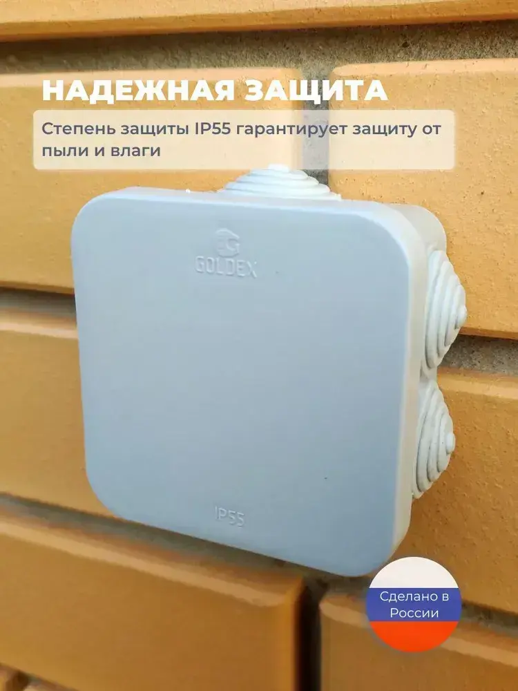 Коробка распределительная 70х70х40 мм., 10 шт. для электрических проводов, монтажная серая, 6 герметичных вводов, пластиковая уличная влагозащищенная IP55, распаячная на стену наружного монтажа