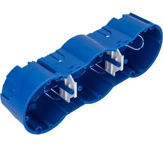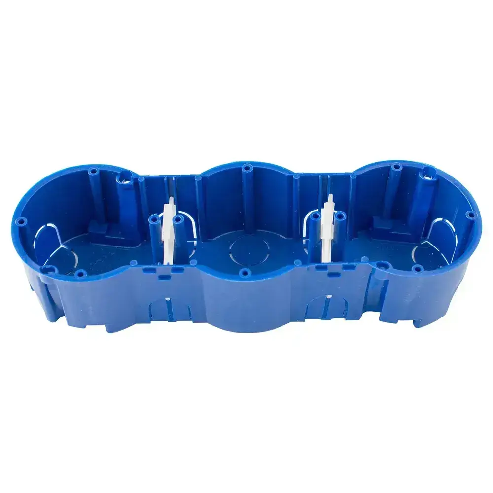 Коробка установочная 3-местная евростандарт синяя, для бетона и кирпича, (207х66х47,4мм), 1шт