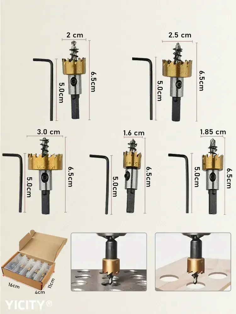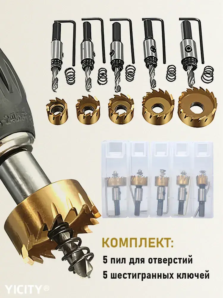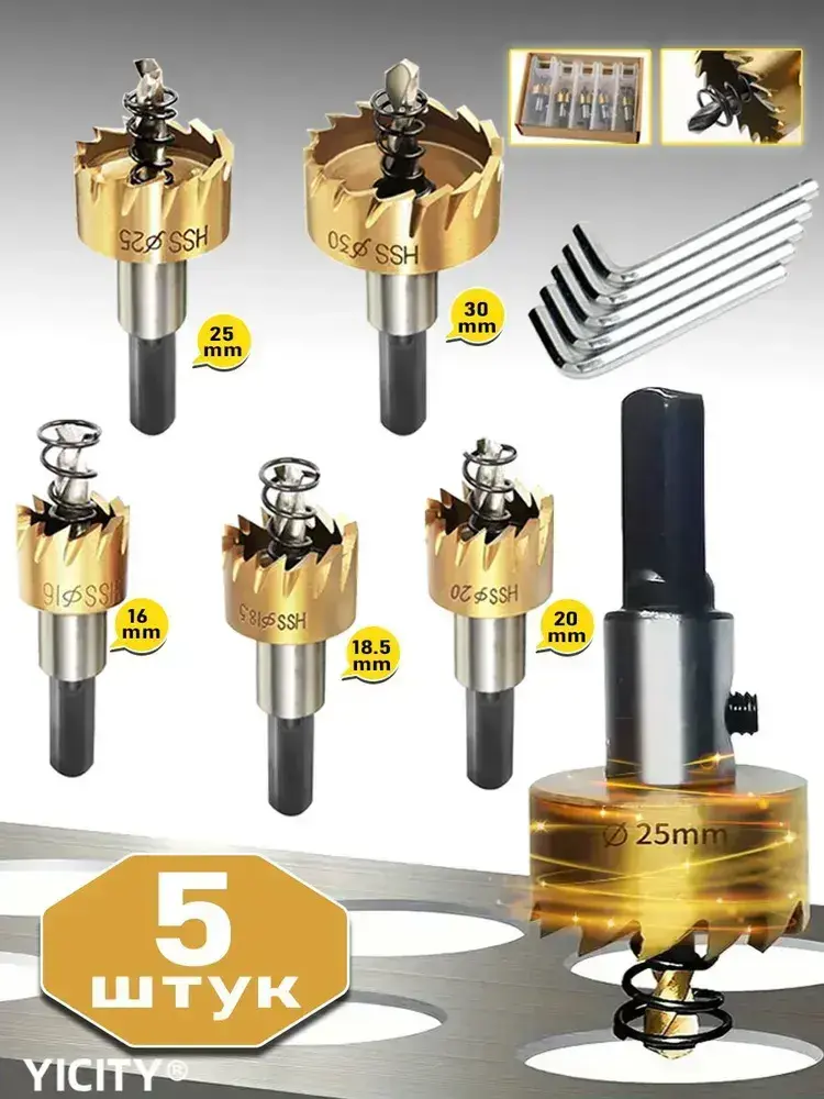 Коронки по металлу (Корончатые сверла) из быстрорежущей стали (набор 16-30 мм)/набор сверл по металлу/5 шт