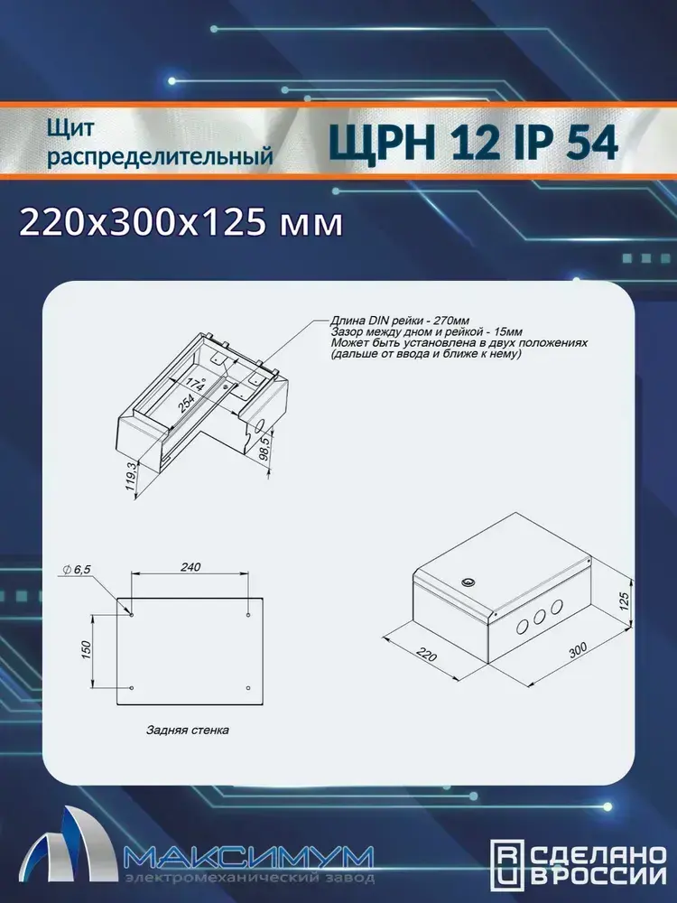 Корпус щита распределительного навесного ЩРН-12 (220х300х125) IP54 , металл