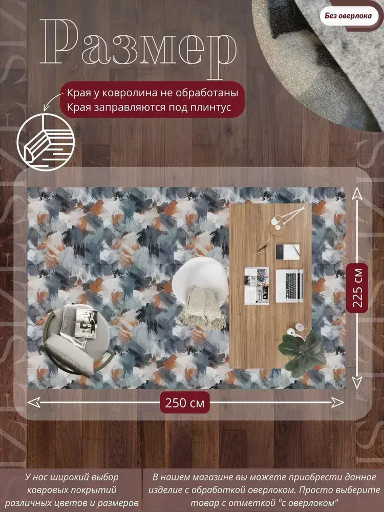 Ковролин метражом 2,5х2,25 м, безворсовой "Акварель", многоцветный без оверлока